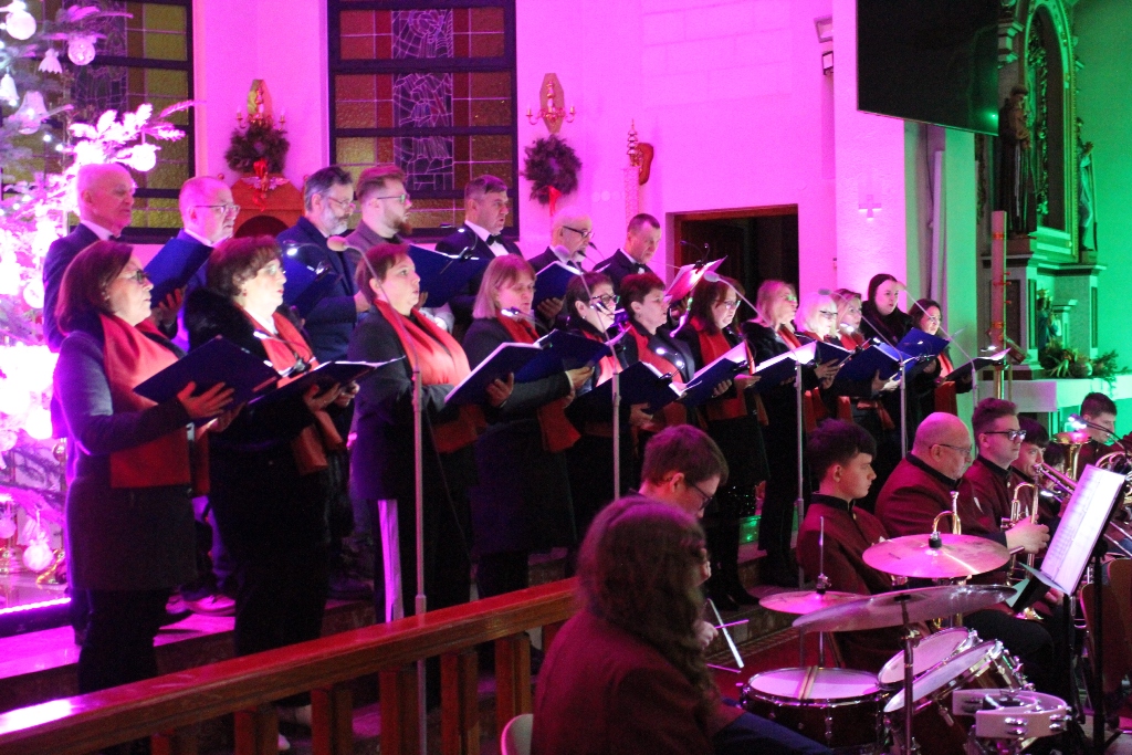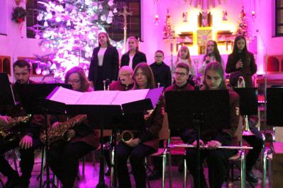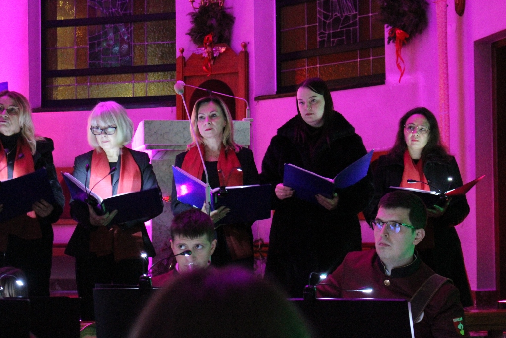 Był to wyjątkowy wieczór, pełen wzruszeń i świątecznej radości. Usłyszeliśmy najpiękniejsze kolędy i pastorałki w wykonaniu dzieci i młodzieży ze Studia Wokalnego GOK, działającego pod kierunkiem Katarzyny Burkot, Chóru Parafialnego Virtute Deo, a także solistów: Zuzanny Matuszyk, Mirosława Skrzypca, Julii Kulki oraz Krzysztofa Libera. Szczególnym akcentem był pierwszy występ podczas Koncertu Kolęd Orkiestry Dętej działającej przy GOK, pod batutą Jakuba Cetnarowskiego, który pełnił rolę maestro całego wydarzenia.