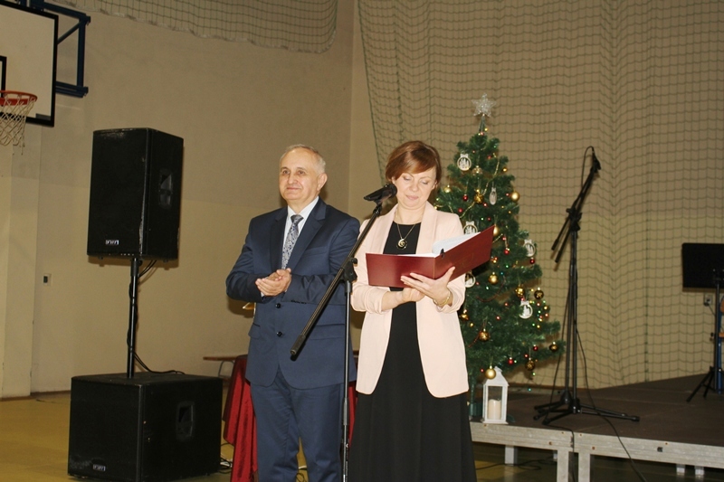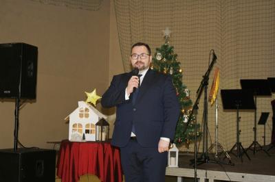 Pan Karol Górski przedstawił prezentację podsumowującą najważniejsze inwestycje i projekty zrealizowane w ubiegłym roku. Wraz z Przewodniczącym Rady Gminy Bogusławem Łukaszykiem  podziękowali tym, którzy wspierają przedsięwzięcia w naszej gminie, a także tym, którzy je realizują.  Złożyli życzenia wszystkim zebranym, życząc wszelkiej pomyślności w rozpoczynającym się roku. Głos zabrali także zaproszeni goście, przekazując noworoczne życzenia i słowa uznania dla działań samorządu.
