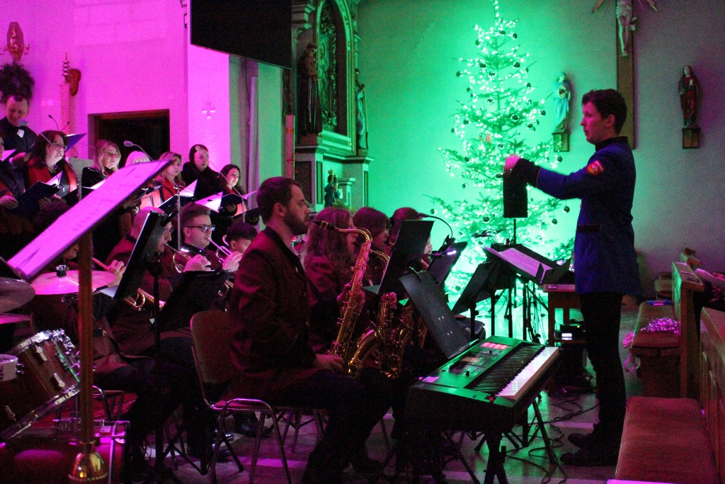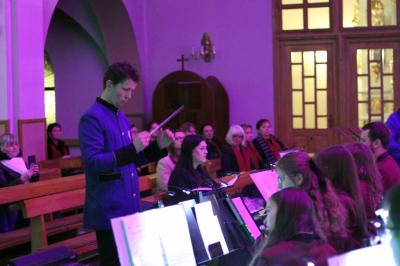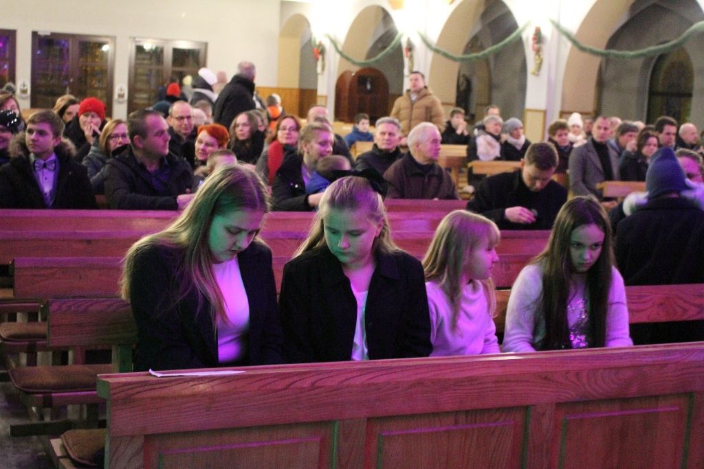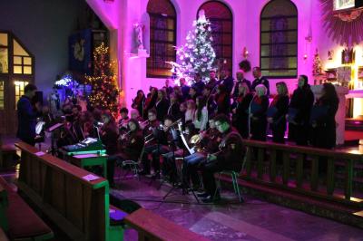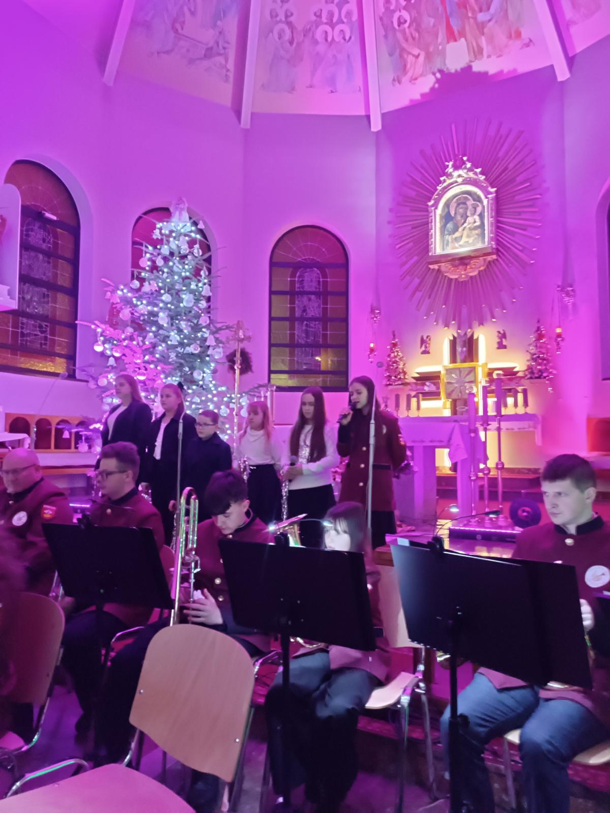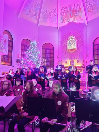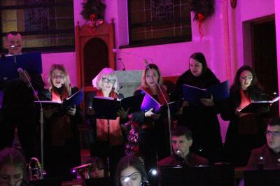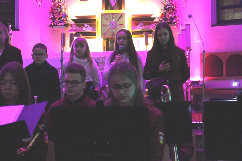 Był to wyjątkowy wieczór, pełen wzruszeń i świątecznej radości. Usłyszeliśmy najpiękniejsze kolędy i pastorałki w wykonaniu dzieci i młodzieży ze Studia Wokalnego GOK, działającego pod kierunkiem Katarzyny Burkot, Chóru Parafialnego Virtute Deo, a także solistów: Zuzanny Matuszyk, Mirosława Skrzypca, Julii Kulki oraz Krzysztofa Libera. Szczególnym akcentem był pierwszy występ podczas Koncertu Kolęd Orkiestry Dętej działającej przy GOK, pod batutą Jakuba Cetnarowskiego, który pełnił rolę maestro całego wydarzenia.