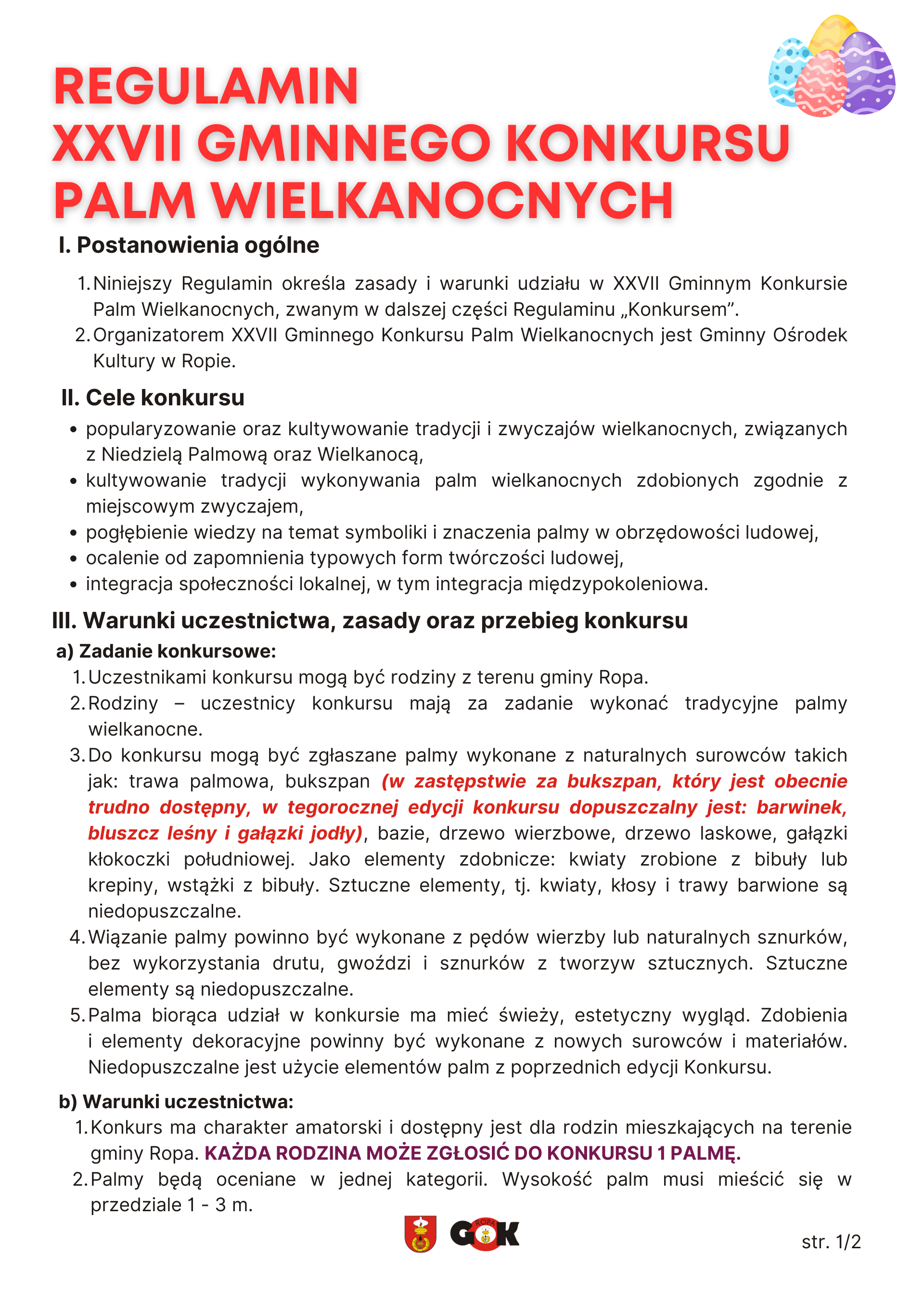 XXVII Gminny Konkurs Palm Wielkanocnych